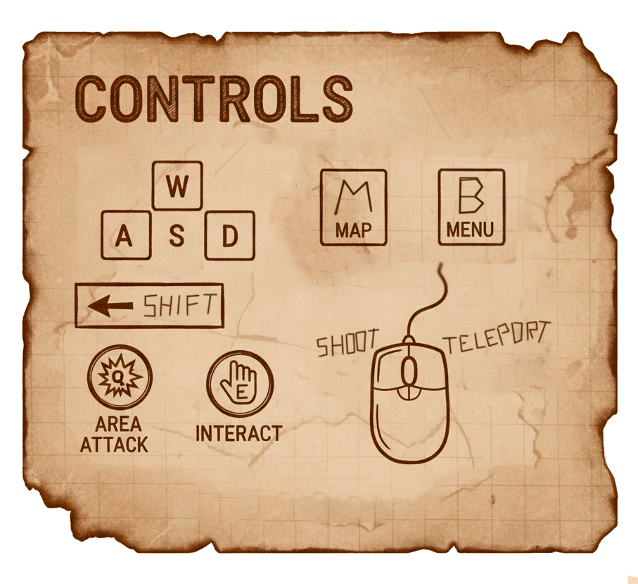 - Tactical Teleport (Right Click): An advanced mobility tool. The player projects an energy beam up to a distance of 5 meters; if the path is clear of obstacles, the player instantly teleports to that location, enabling flanking maneuvers or the ability to dodge lethal attacks.